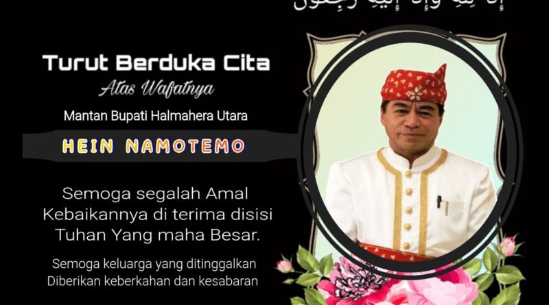 Ruangcoretan – Halmahera Selatan – Media Center Ika Togale menyampaikan duka mendalam atas wafatnya mantan Bupati Halmahera Utara, Ir. Hein