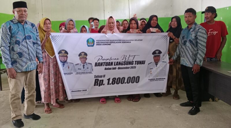 Ruangcoretan.com – Pemerintah Desa Gonone, Kecamatan Kepulauan Joronga, Kabupaten Halmahera Selatan, merealisasikan Bantuan Langsung Tunai (BLT) Dana Desa tahap II,